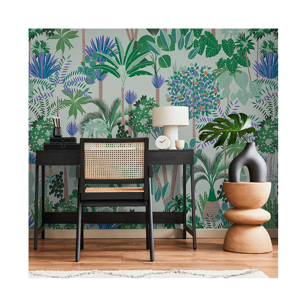 « Pitaya », un papier peint qui raconte un jardin méditerranéen, où foisonnent palmiers, cactus et kumquats ; une mosaïque de sensations olfactives, visuelles et tactiles qui invite à frôler le paradis !