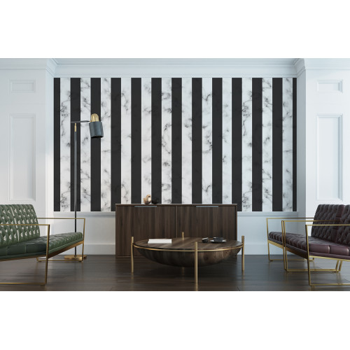 Ces larges rayures enrichies de nervures marbrées, serviront d’écrin à une atmosphère résolument chic et moderne, et accueilleront à merveille des meubles design et avant-gardistes.